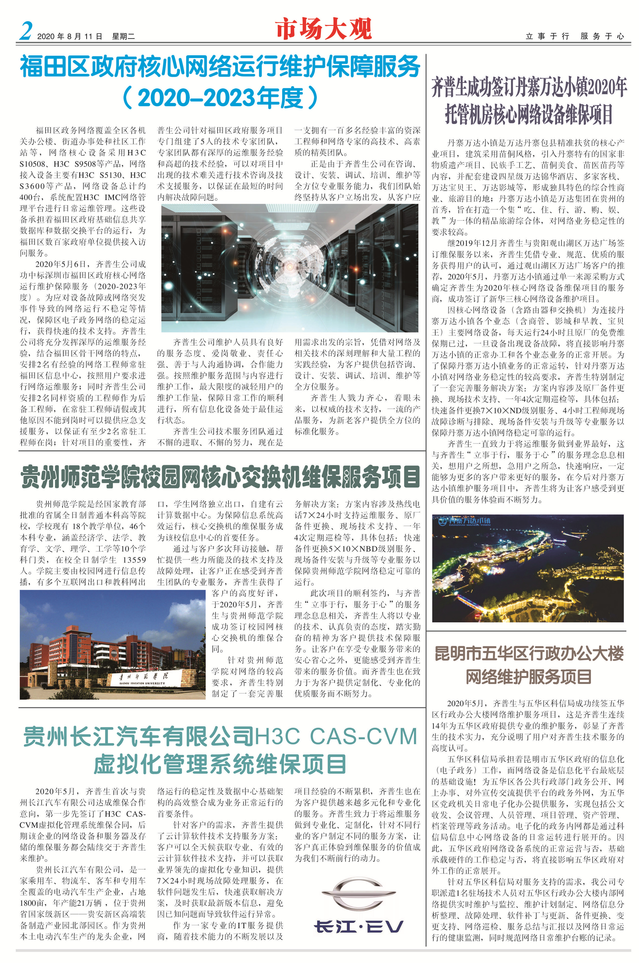 齐普生成功签订丹寨万达小镇2020年托管机房 核心网络设备维保项目
