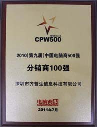 2011年由电脑商报社和电脑商网联合主办的2011年(第九届)中国电脑商年会于7月12日在北京隆重举办,本次年会的主题为“转型 变革 成长”,数百位入选新一届“中国电脑商500强”的优秀企业代表及观礼企业嘉宾将云集一堂,畅所欲言,共同研讨行业发展和企业成长的机遇与挑战。作为IT服务领域的资深企业,齐普生荣幸地参与了此次盛大的业内聚会,与众多业内企业一起交流学习,在现场嘉宾的见证下荣登全国“分销商100强”且排名第15位,并获得“最佳IaaS方案服务提供商”的荣誉资质,获奖理由为:在IaaS市场商机出现后,齐普生整合H3C等主流网络厂商的产品和技术,快速推出相关解决方案,并进行技术人才的培养和储备,占据了市场先机。
